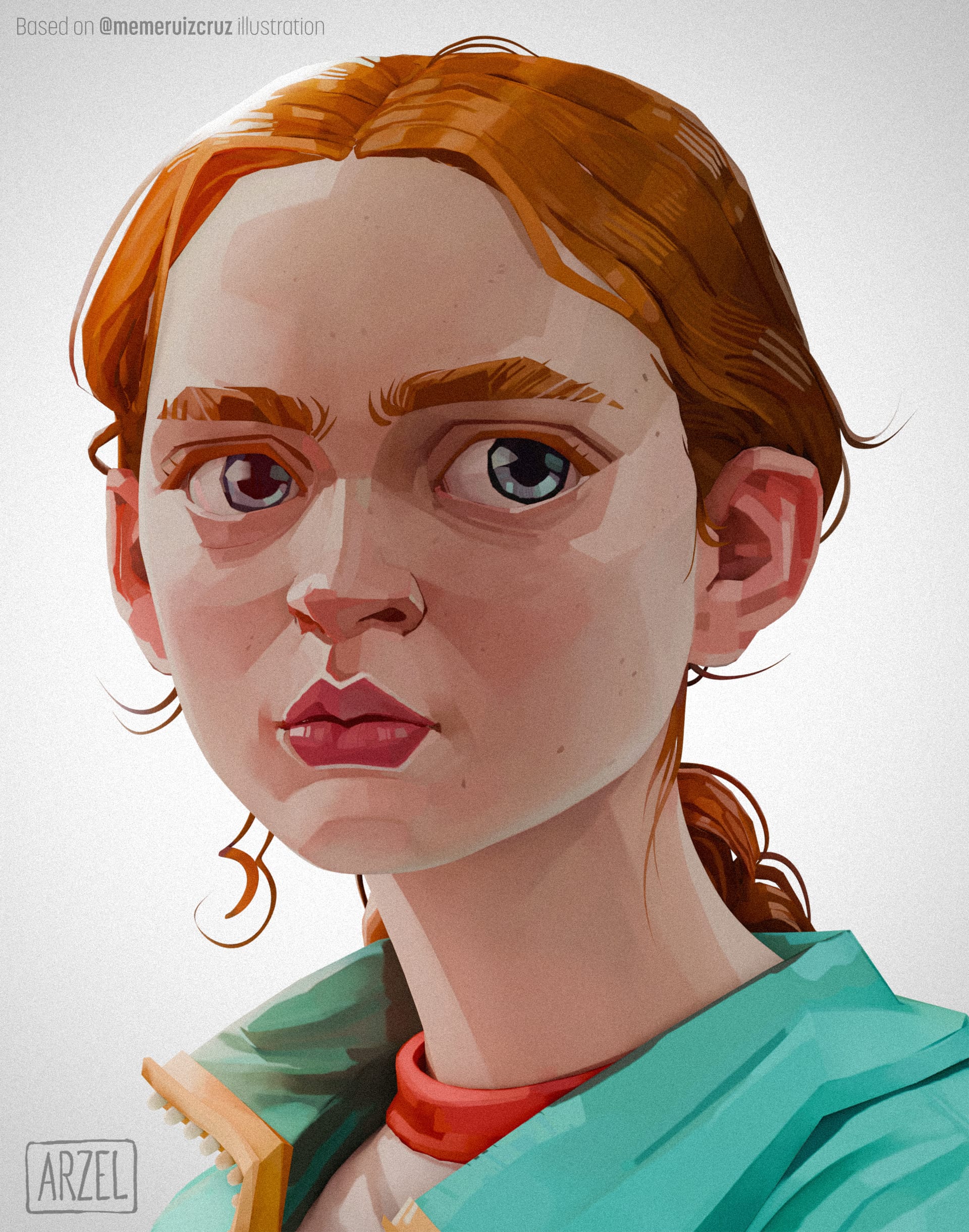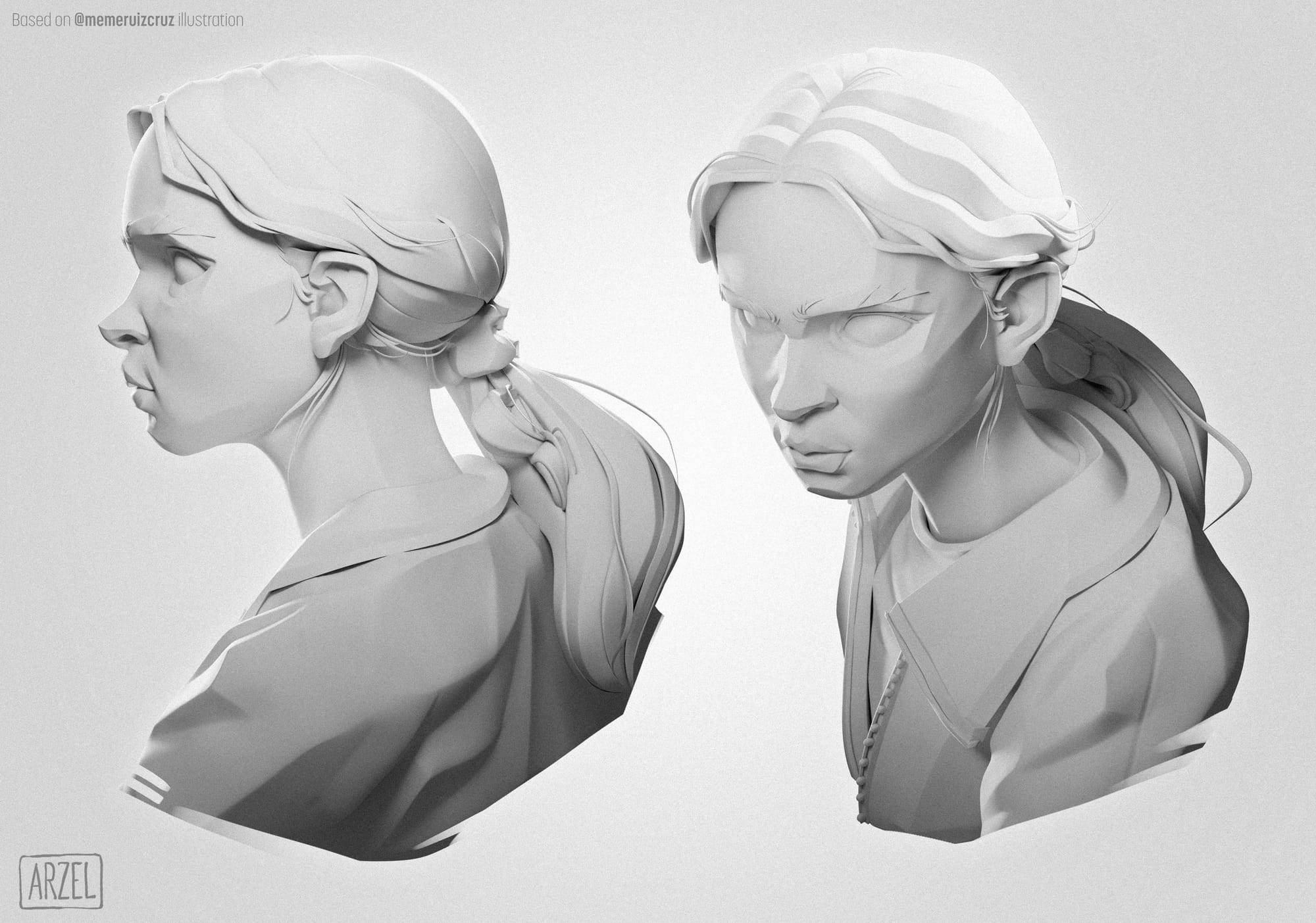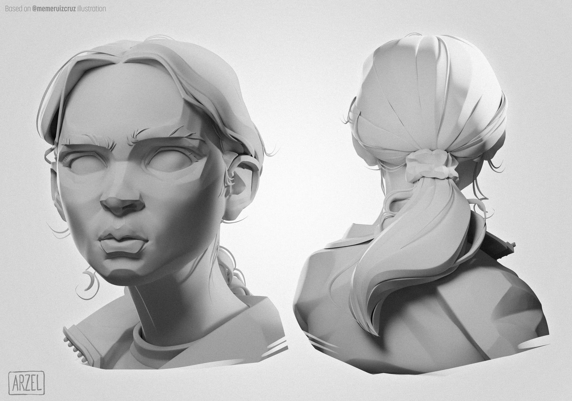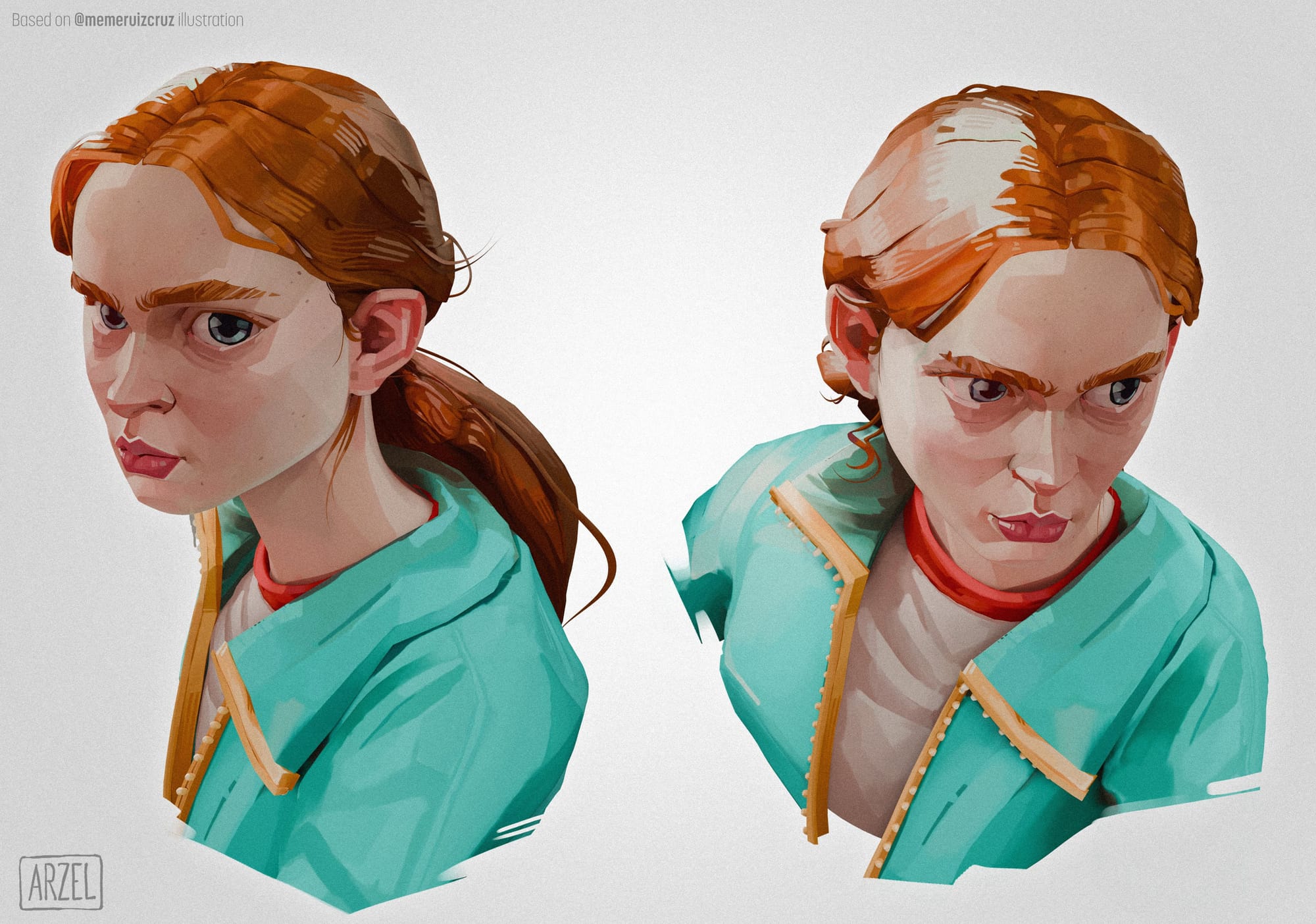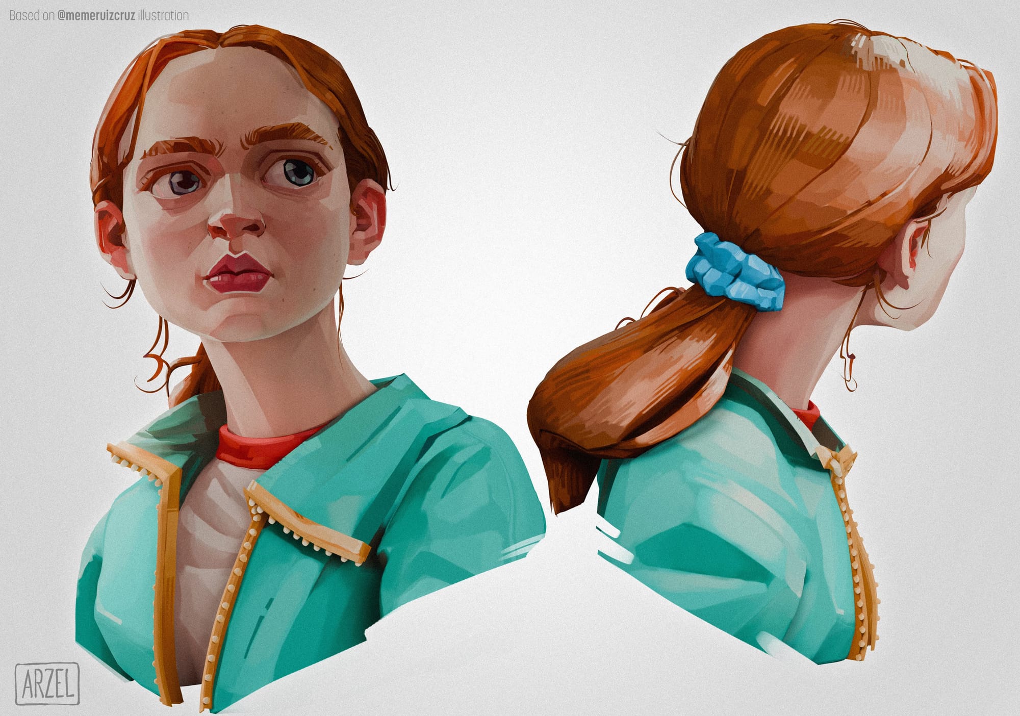 Arnaud reimagined Meybis Ruiz Cruz's 2D stylized portrait of "Max" in 3D, using ZBrush and Substance 3D Painter.