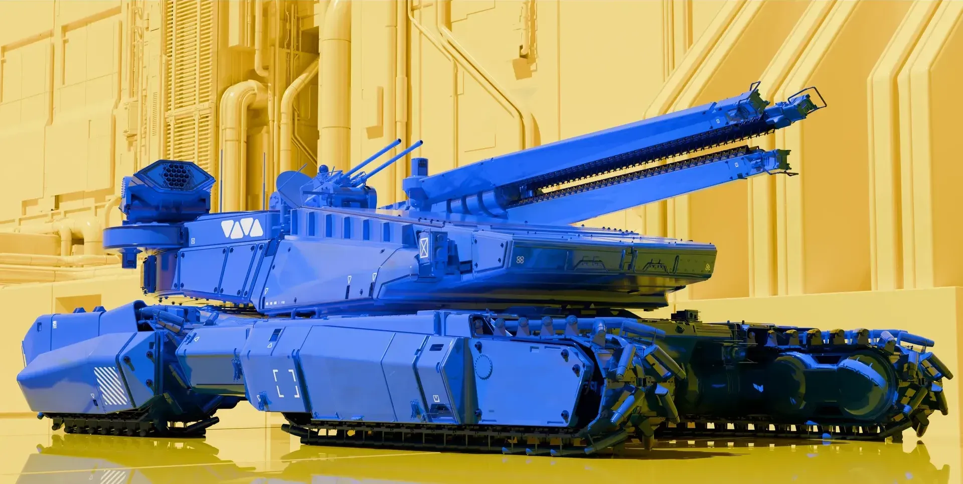 A Glossy finish for a 3D combat tanks, illustrating a stylised approach yet complex in hard surface design, by designer Tom Hicks.